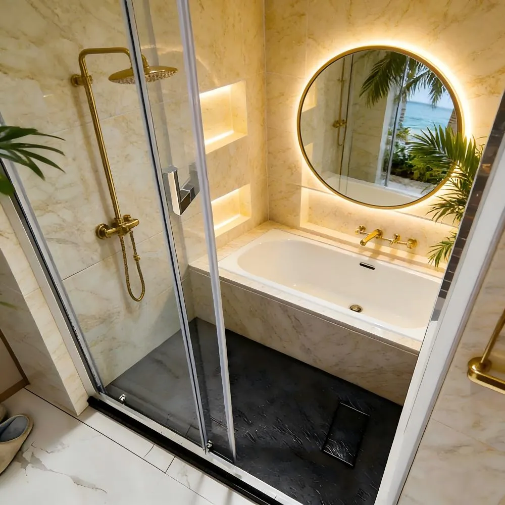Crafted from a single piece of SMC via high-temperature compression molding, it has no seams or joints, eliminating water seepage at the source. The material is acid and alkali resistant, anti-aging, crack-proof and deformation-resistant, offering a far longer service life than traditional tiled shower areas.